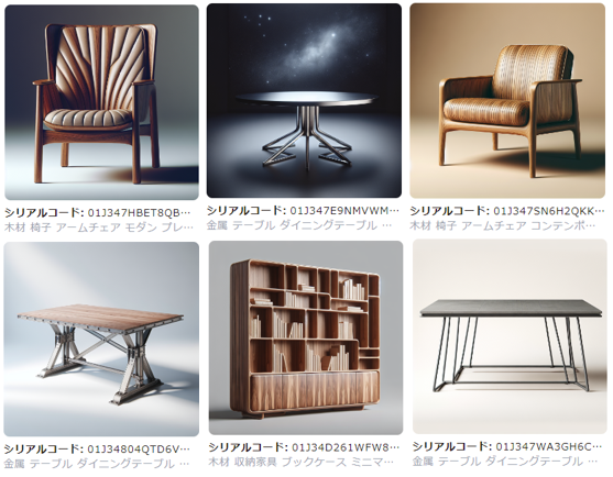 カナエテAIは、ユーザーがキーワードを選択するだけで多様な家具デザイン画像を生成できる生成AIサービスです。