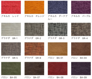 ※3)選択可能な張り地素材の生地見本(一部抜粋)